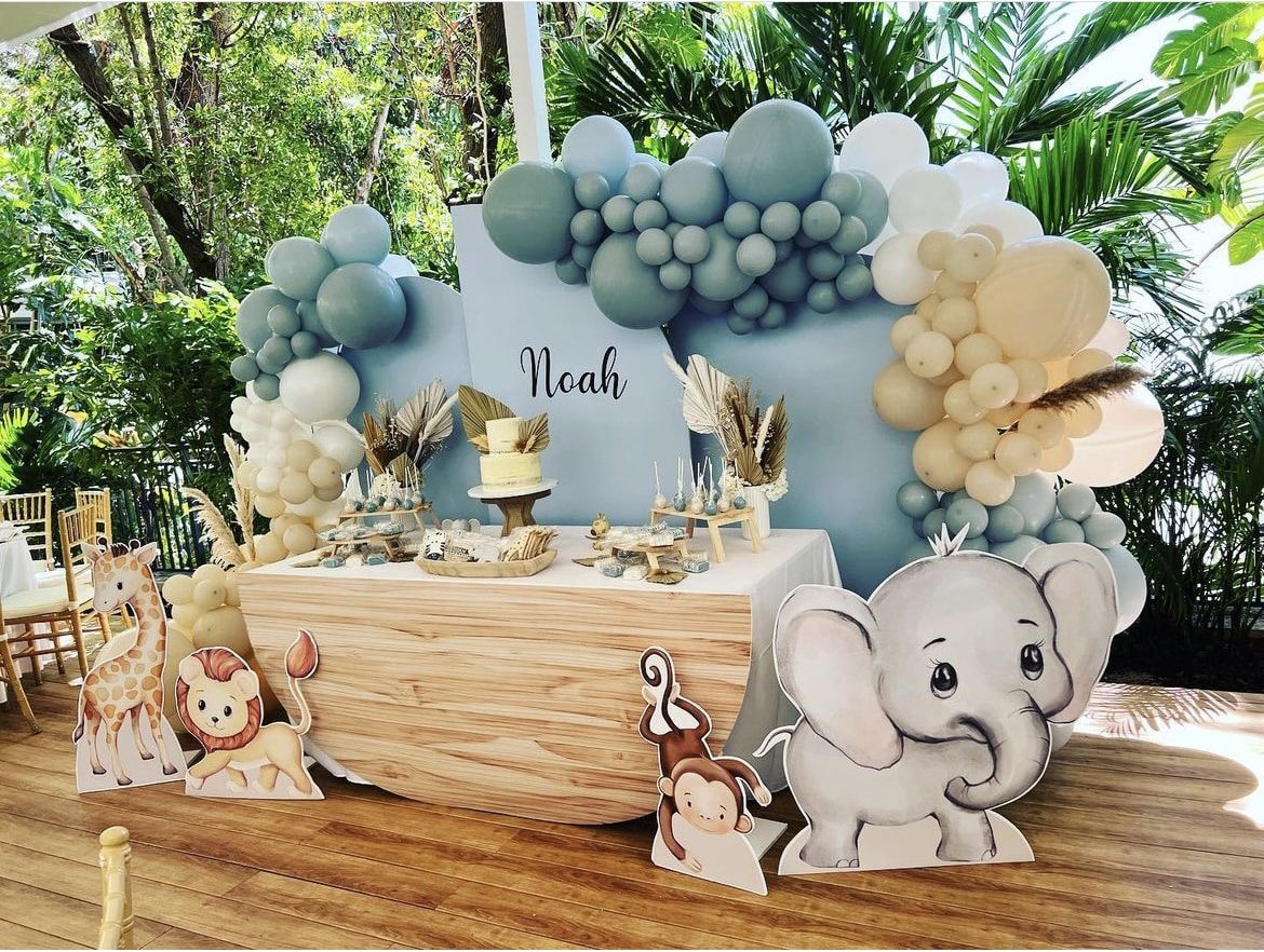 For a “Little Explorers” safari theme, focus on sophisticated animal prints and lush greenery. Think oversized monstera leaves and gold-painted animal figurines. This theme works wonderfully for twins by featuring pairs of lions or elephants throughout the decor. It brings a sense of adventure and excitement to the party. Use burlap table runners and woven baskets to ground the design. It is a playful yet polished way to welcome two new adventurers into your growing family this season.