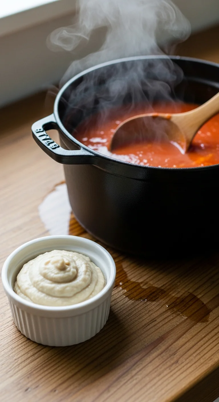 Umami is the savory fifth taste that makes restaurant soup so addictive. A spoonful of white miso paste stirred in at the end provides a rich, complex depth without altering the classic tomato profile.