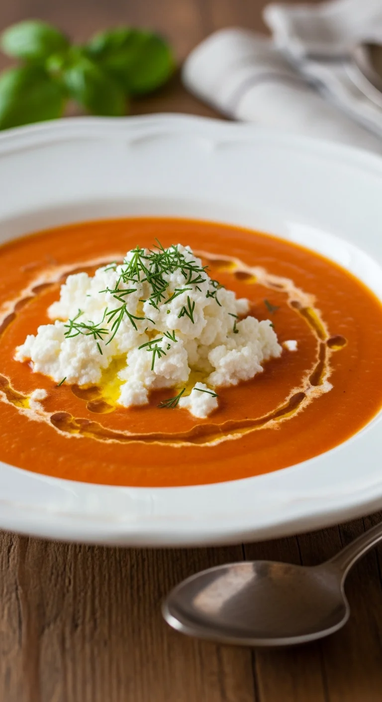 Move beyond croutons and upgrade your garnish game. Whipped feta creates a salty, tangy, and surprisingly fluffy topping that melts slightly into the hot soup, providing a wonderful textural contrast.