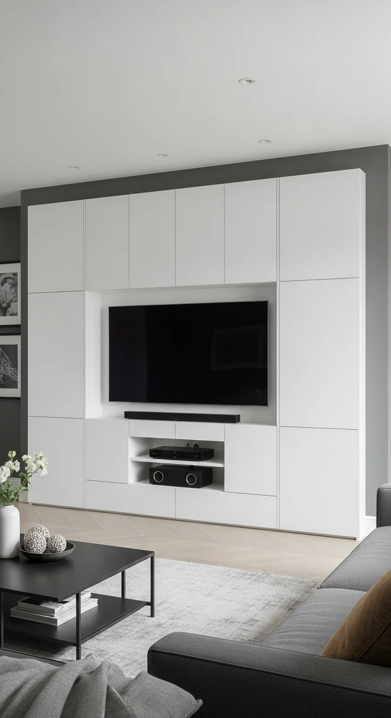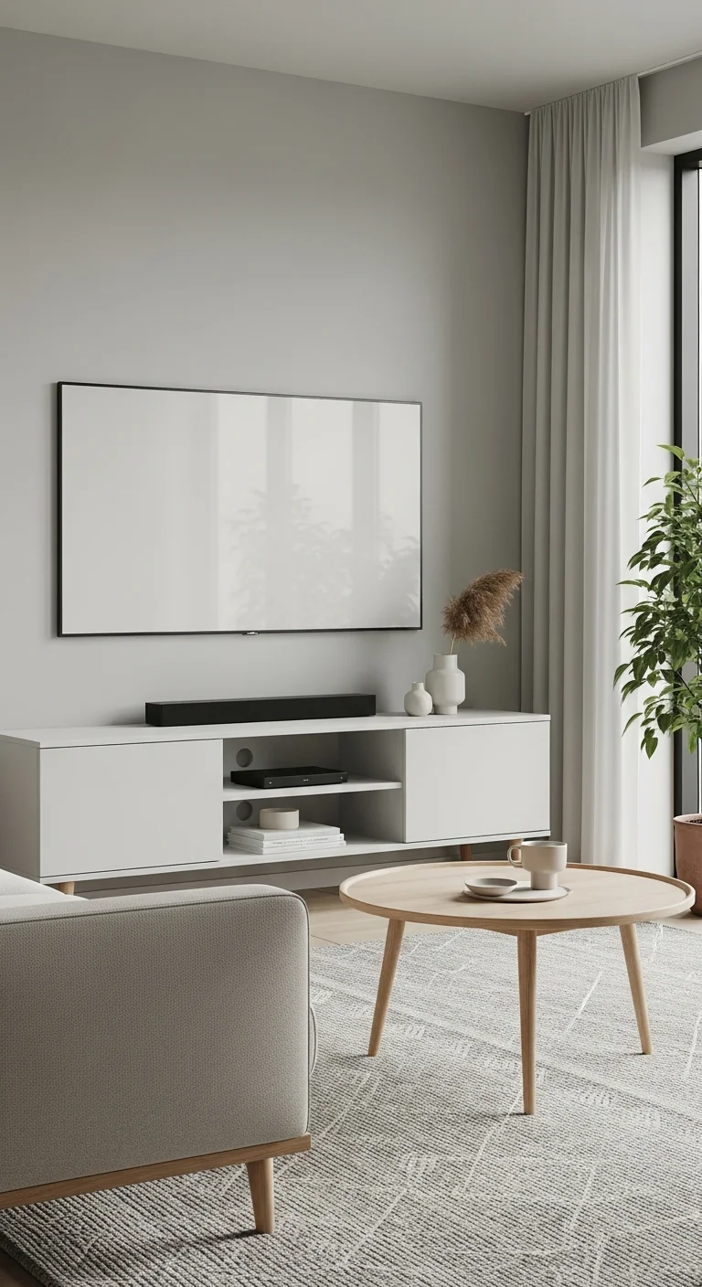 To maintain the pristine airiness required by Scandi style, all functional clutter must be concealed. Invest in high-quality built-in cabinetry that blends seamlessly with the walls, often finished in the same matte white. Low-profile media consoles and cabinets with push-latch doors keep surfaces completely uninterrupted. If you live in a smaller space, clever solutions like 14 Brilliant Ottoman Storage Ideas for Tiny Flats are excellent ways to integrate storage without sacrificing the light, open environment.