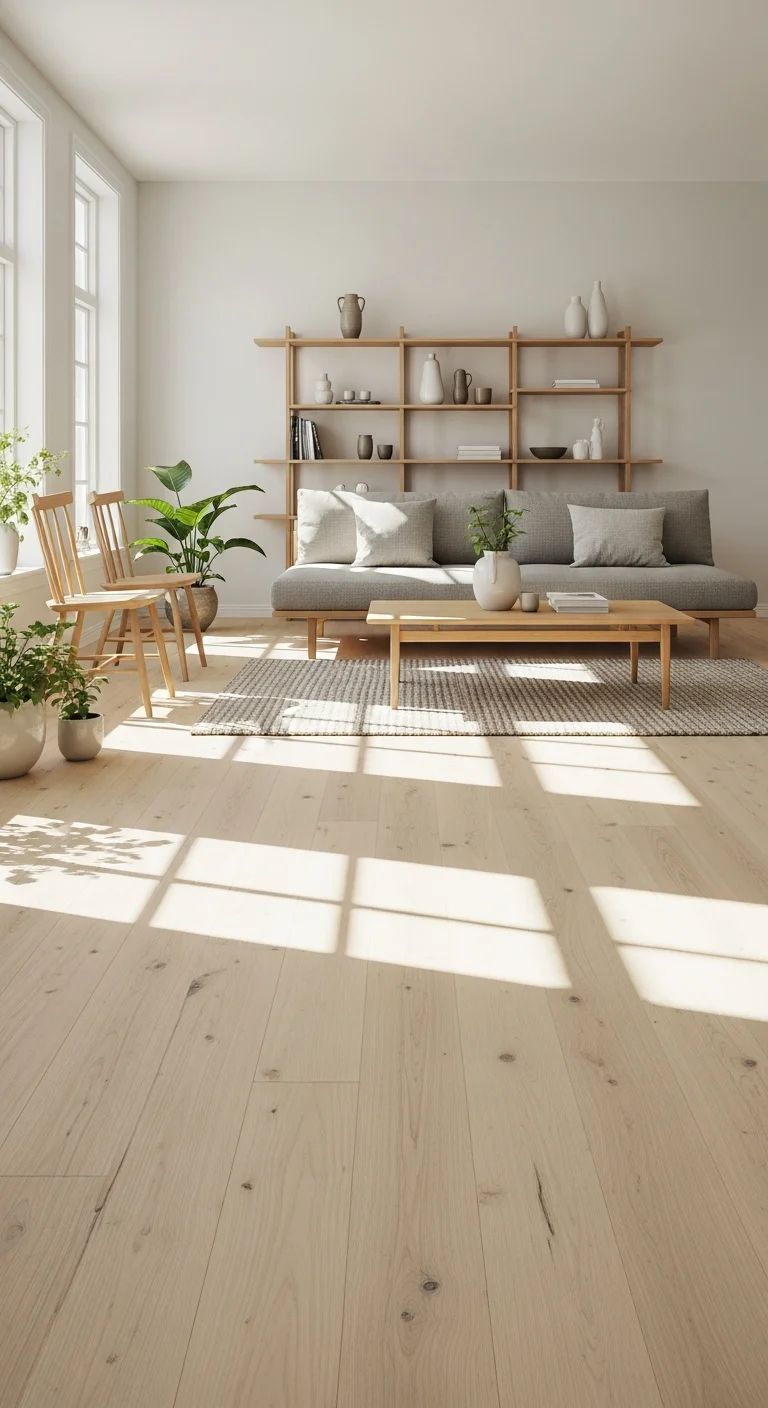 Light-colored woods like ash, birch, or pale oak are vital components of the airy Scandinavian aesthetic. They introduce warmth and an organic feel without weighing down the visual space. Apply light wood not just to flooring, but also to dining tables, media consoles, and accent chairs. The clean grain and neutral tone complement the white walls perfectly, enhancing the sense of nature and daylight within the interior. Avoid dark stains that absorb light and make the room feel heavy.