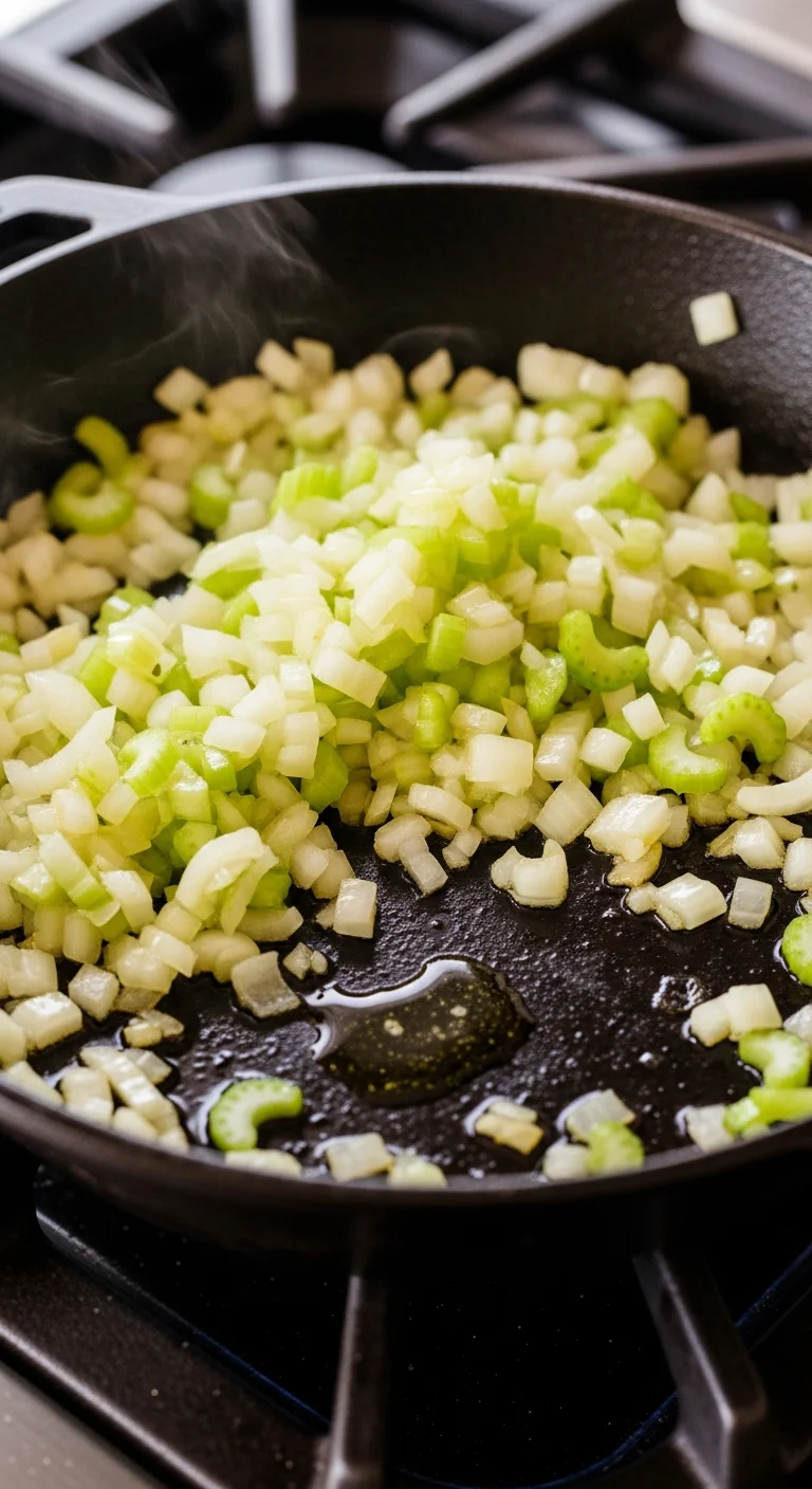 2. Add onion and celery, sautéing until translucent and soft (about 8 minutes).