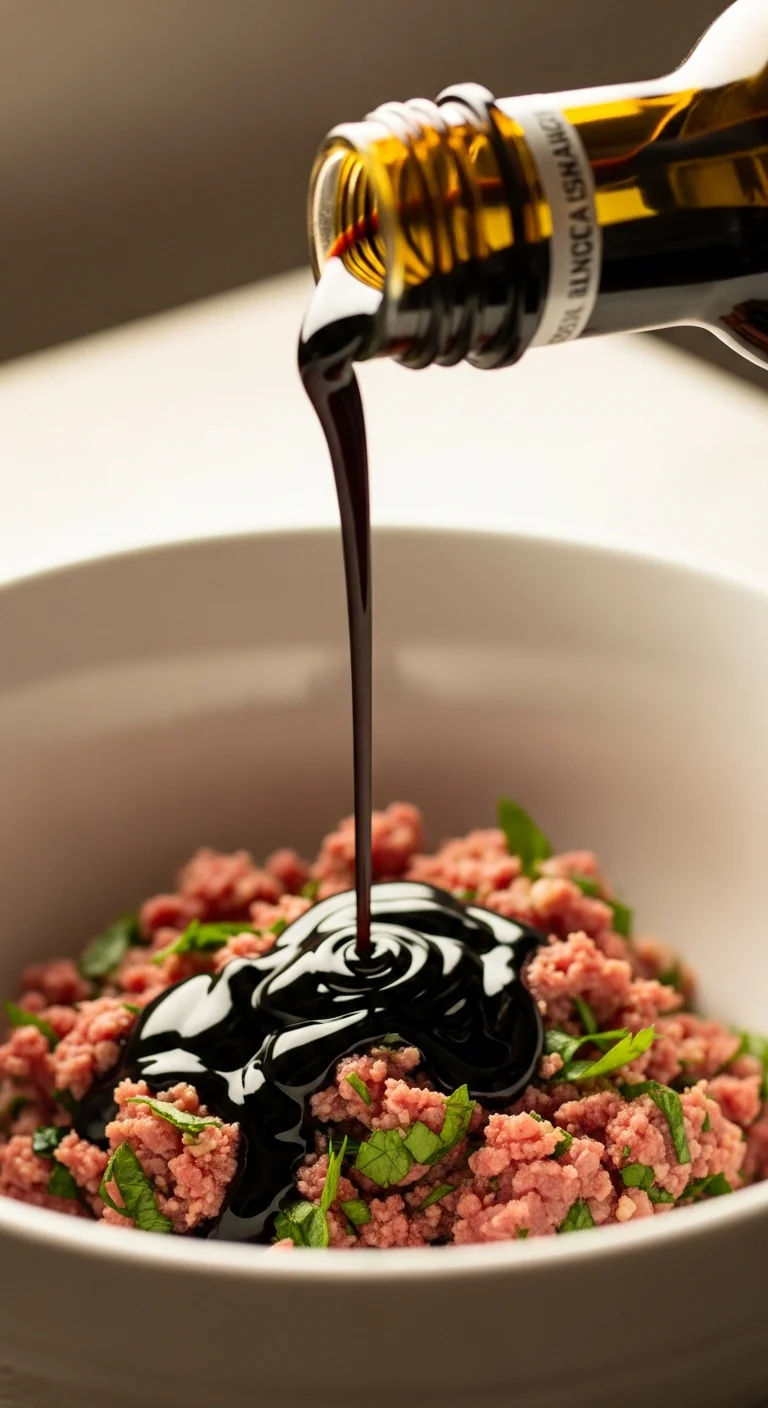 Bison is naturally sweet, and a small dash of high-quality balsamic vinegar adds necessary acidity and complexity without the drying effect of tomato acid. Add it late in the mixing process.