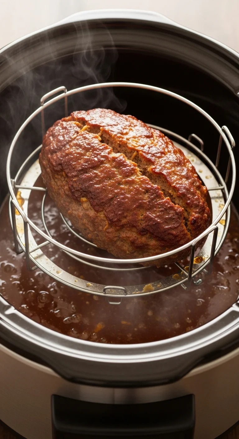 The most common slow cooker error is letting the meatloaf simmer directly in its own rendered fat and liquid. Use a rack or wadded foil balls to lift the loaf, enabling proper steaming and preventing a soggy bottom.