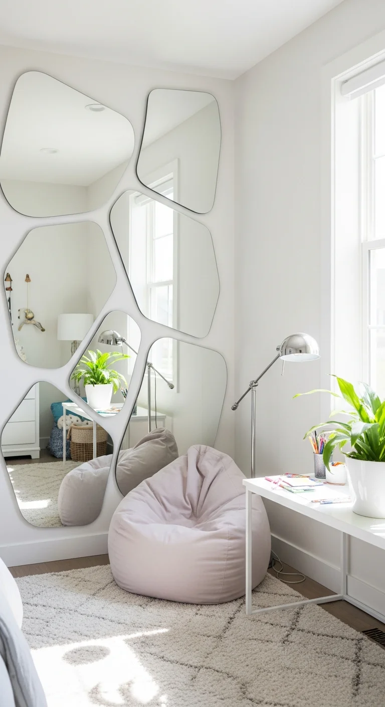Mirrors are not just for getting ready; they are powerful design tools. Using multiple geometric mirrors or one large floor-to-ceiling piece can dramatically increase the perception of space and light.