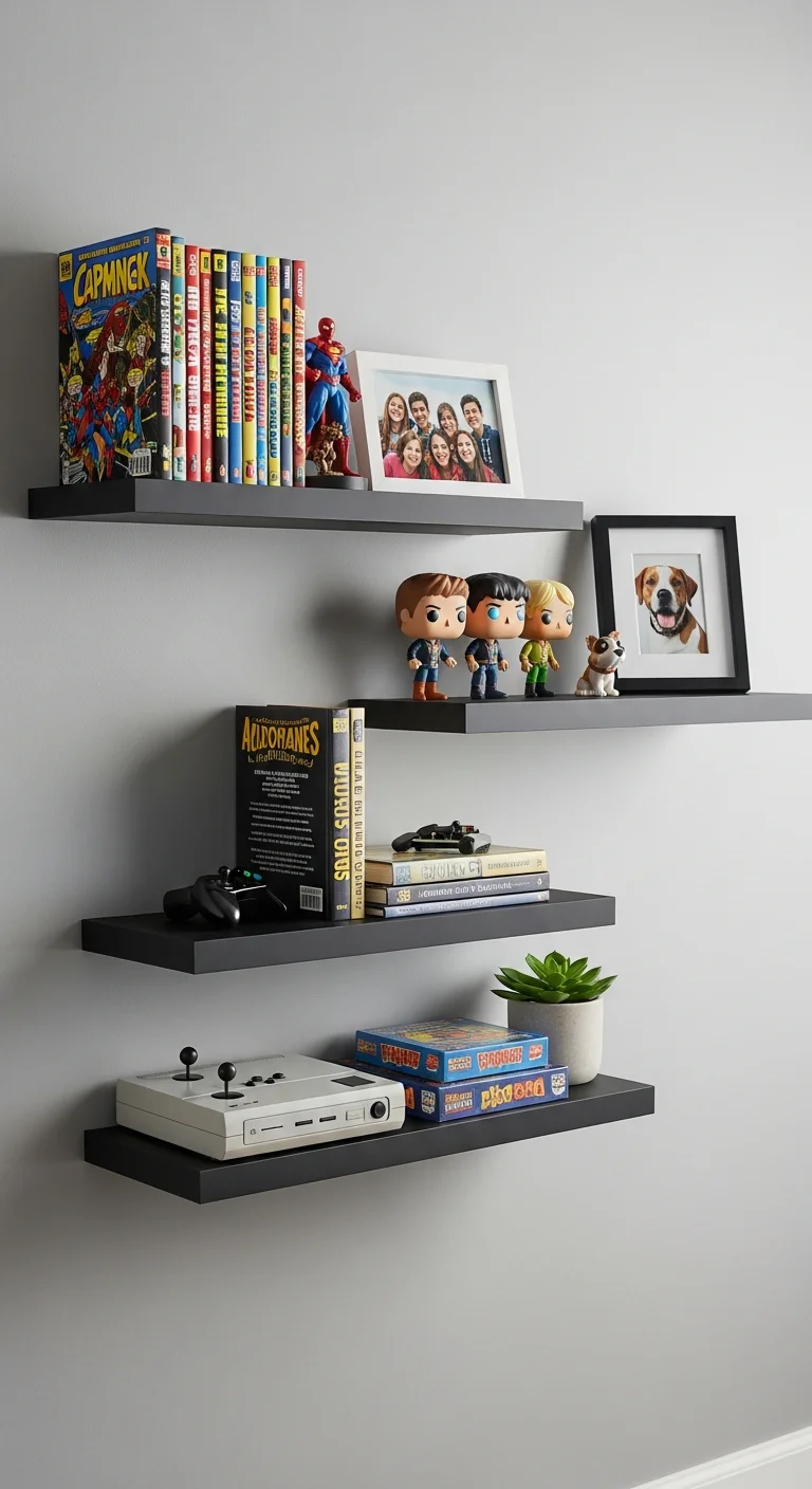 Floating shelves are perfect for tweens as they allow easy rearrangement of display items—from trophies and books to small collections and personalized artifacts. Install them in staggered arrangements rather than traditional straight lines for a more dynamic look.