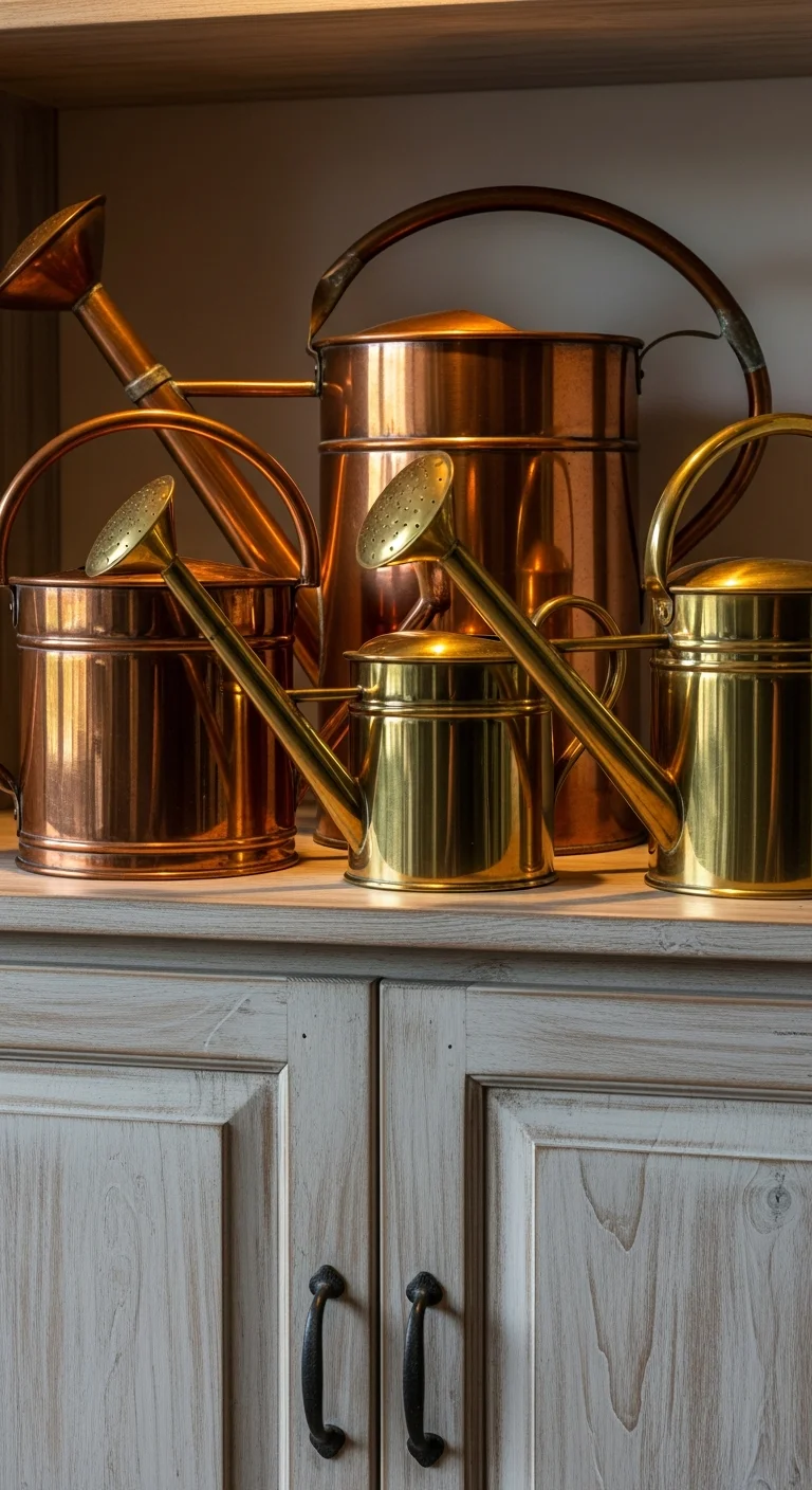 For garden enthusiasts or those seeking a unique cottage charm, polished copper or galvanized metal watering cans can be styled above the cabinets. This unexpected item adds an element of whimsical appeal and a touch of metallic sheen, reflecting light beautifully. Keep the display sparse and focus on the quality and finish of the metal over quantity. They signal that the kitchen is a space connected to nature and growth, introducing a delightful surprise.