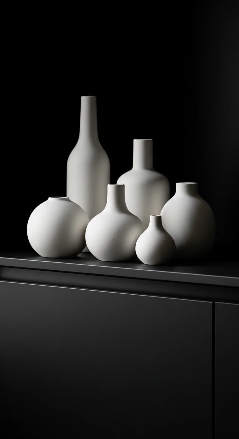 If your kitchen uses bold colors elsewhere, use the cabinet tops for a calming, monochromatic display. Group several vases or ceramic cylinders, varying widely in height and circumference, all in one single, muted color—like matte white, deep charcoal, or soft beige. This sophisticated technique adds elegance and structure without overwhelming the eye. Thoughtful decor like this is often considered the perfect finishing touch for a truly polished, high-end room.