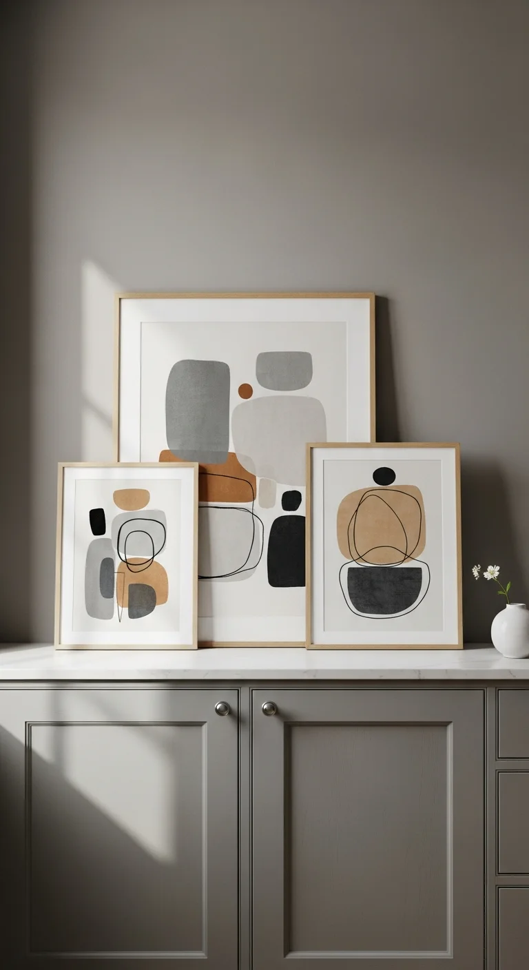 Transform the area into a mini gallery by leaning framed artwork or small decorative mirrors. Since the height makes viewing detailed pieces difficult, focus on abstract pieces or simple graphic prints. Ensure the frames complement your kitchen hardware—gold for traditional spaces, or matte black for modern aesthetics. This is a sophisticated way to introduce personality and color above your line of sight, turning an overlooked area into a curated display.