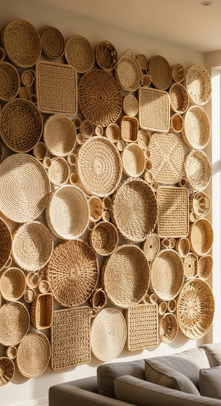 Choose pieces with different natural dyes or weave patterns to provide contrast. Mount them flat or slightly staggered in depth to maximize their three-dimensional quality. This is an excellent way to fill a large vertical space affordably.