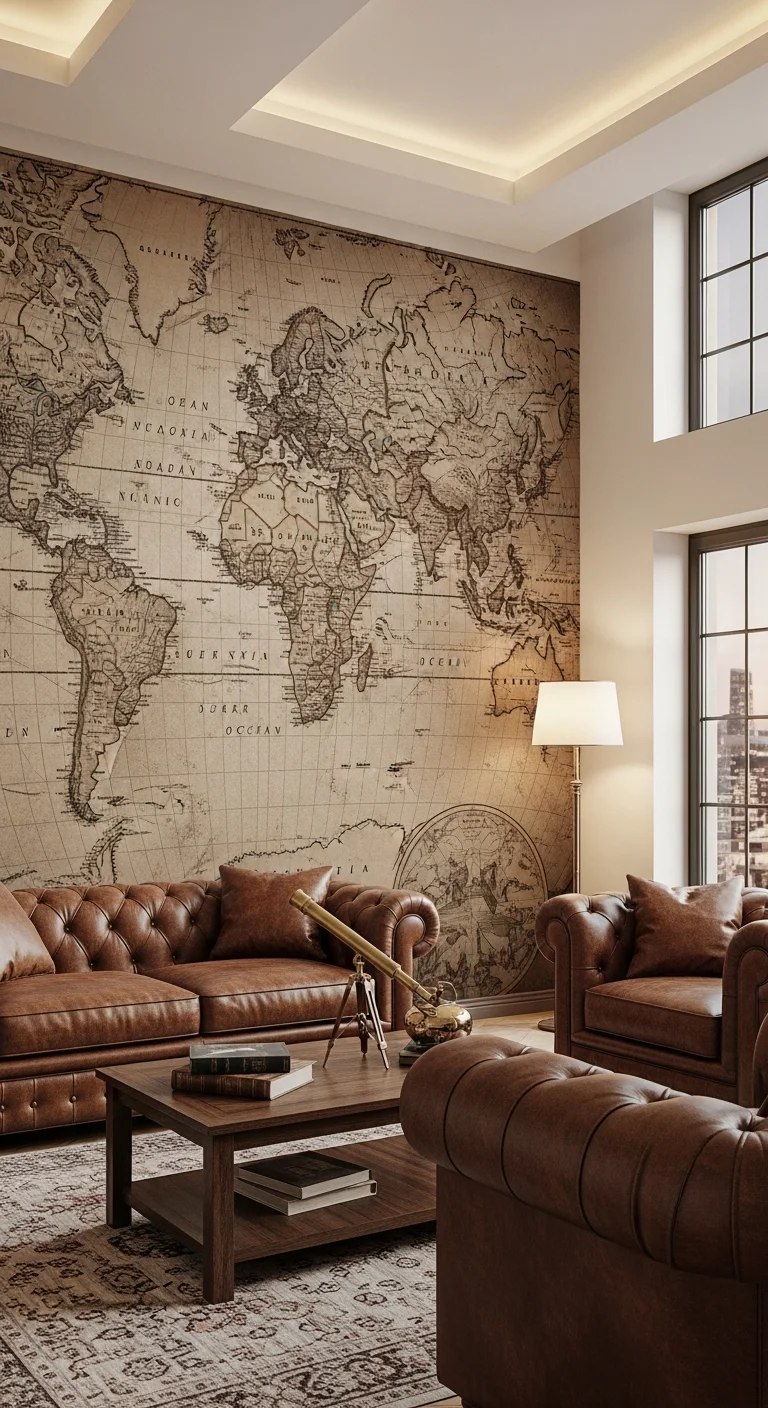 A vintage map mural creates a sense of scale and adventure. Choose an antique world map, a detailed city street grid, or even a celestial map printed directly onto high-quality peel-and-stick wallpaper or canvas.
