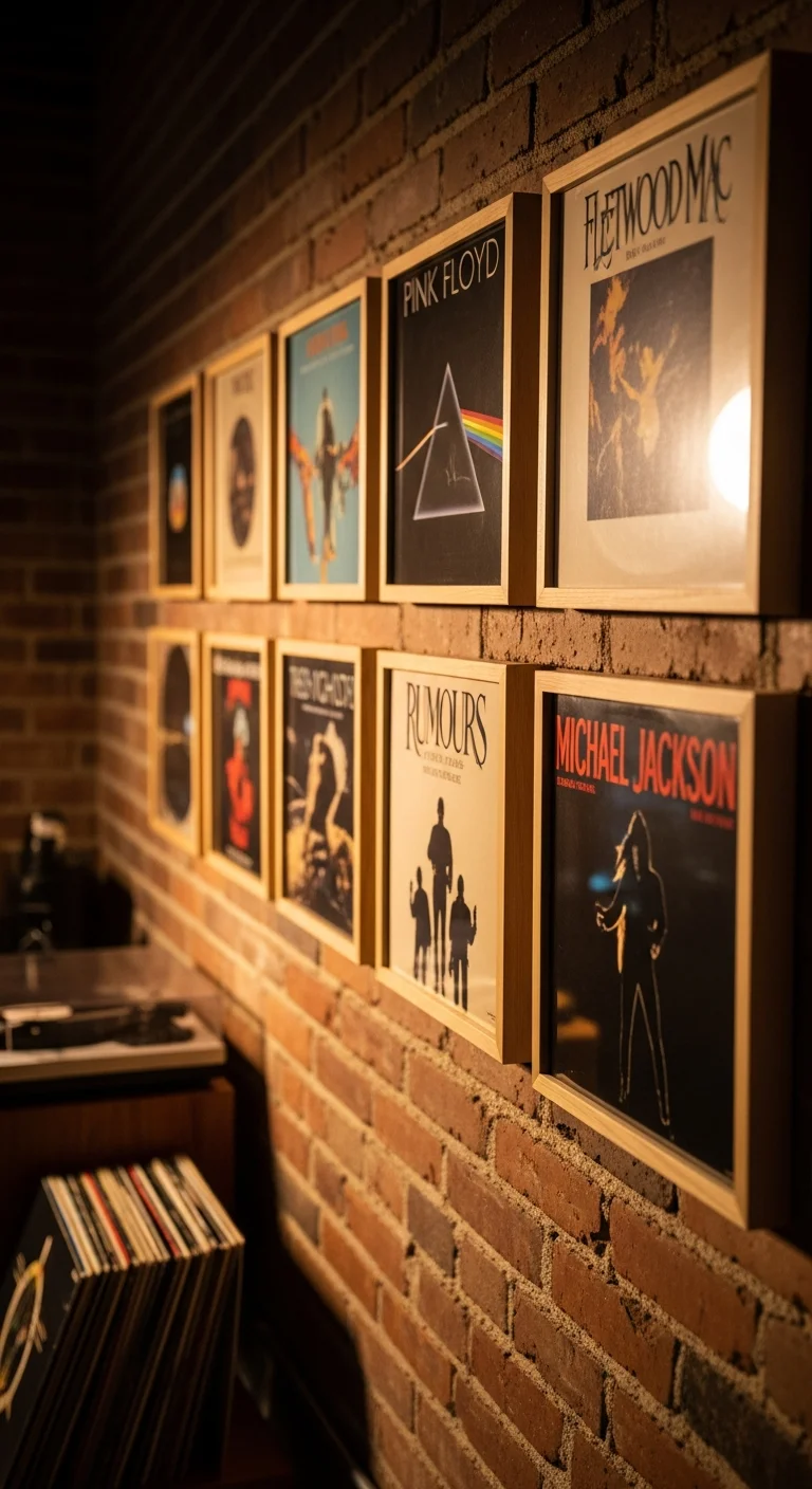 This technique is dynamic and personal. It allows you to rotate the display based on your mood or what you are currently listening to, making the wall a conversation starter.