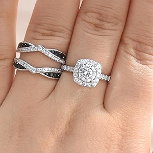 Kobelli is known for their exquisite moissanite jewelry, and this bridal set is no exception. Moissanite offers a brilliance that often exceeds that of diamonds, making it a dazzling choice for a matching wedding band set. These rings are typically set in 14k gold or high-quality silver, providing a luxury feel that is built to last. The moissanite stones are ethically sourced and offer a beautiful alternative for the eco-conscious couple. This set is designed to sit flush together, creating a seamless and radiant look on the finger. The precision cutting of the stones ensures that they catch the light from every angle, providing a spectacular sparkle that will be admired by everyone. It is a premium choice for a modern, sparkling wedding.