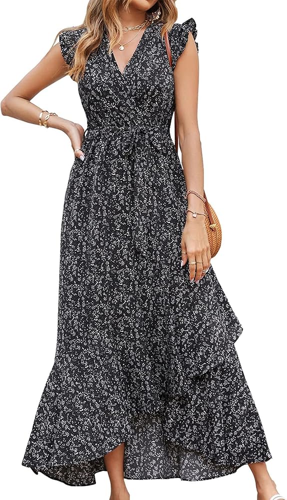 1. ZESICA Women’s Summer Boho Floral Print Flutter Sleeve A Line Maxi Dress