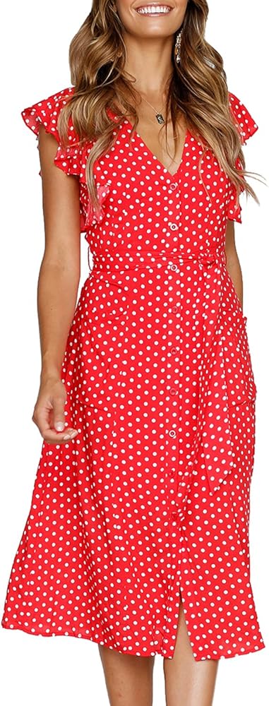 8. Naggoo Women’s Summer Boho Polka Dot V Neck Ruffle Short Dress