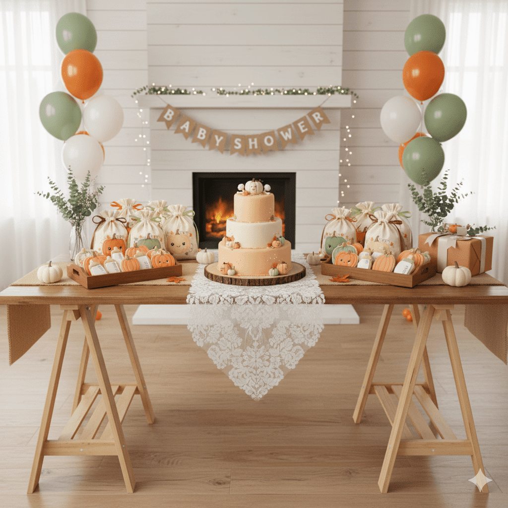 Embrace the charm of nature with a “Woodland Creatures” theme. Think cute foxes, deer, and owls as decor, alongside rustic wood elements and forest greens. Flannel blankets and warm beverages create a cozy atmosphere. This theme is endearing and timeless, perfect for a fall or winter baby shower, bringing warmth and natural beauty to the celebration.