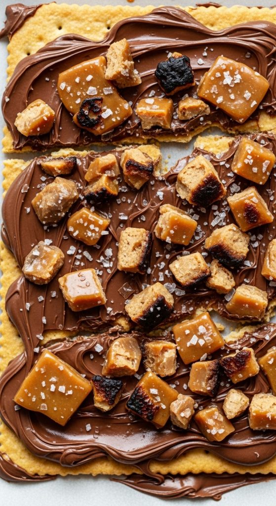 Imagine campfire magic meeting Christmas coziness. Layer graham crackers instead of saltines, add mini marshmallows, drizzle caramel, and cover it all with milk chocolate.