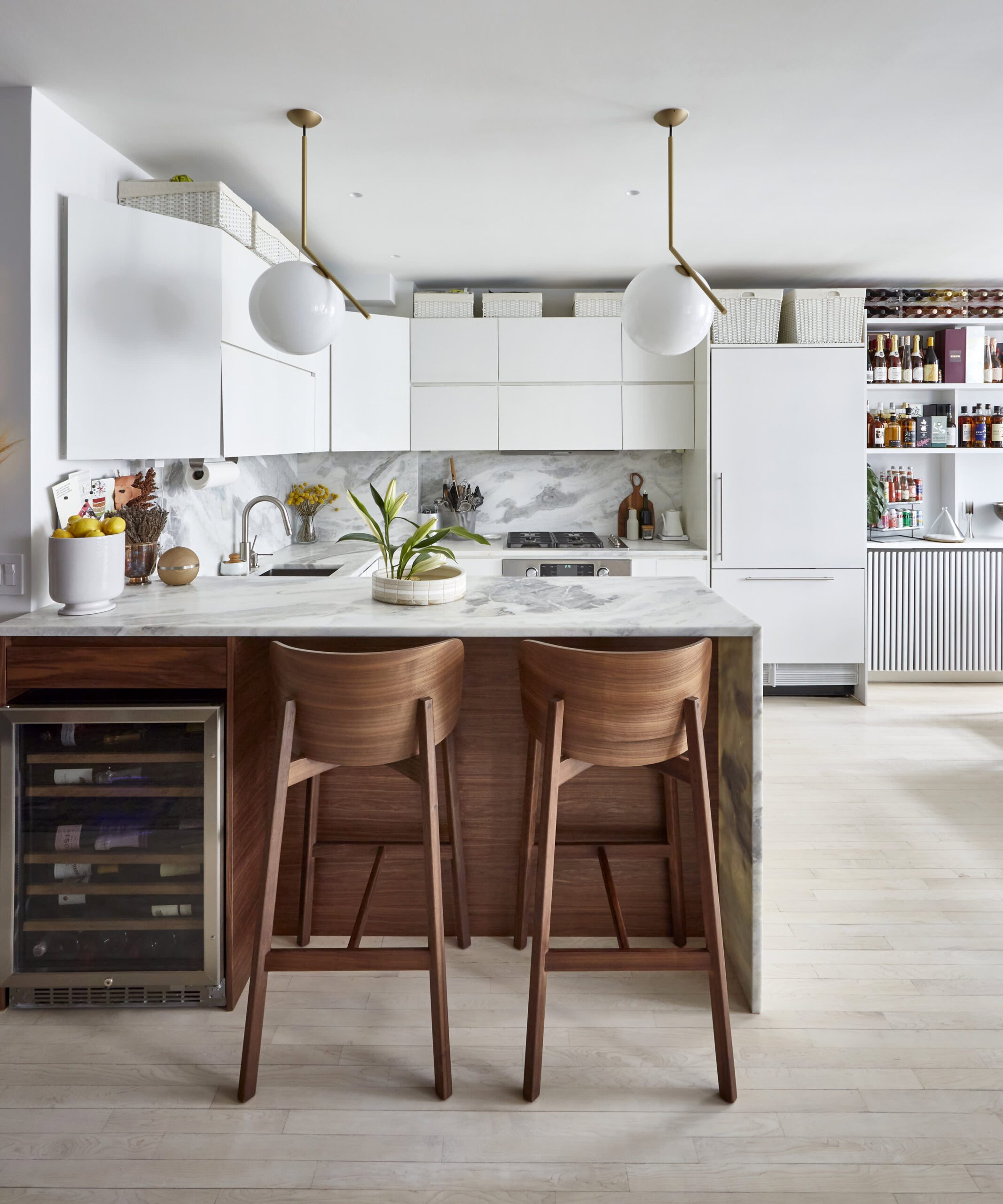 If your cabinets are white, create subtle interest by placing white textured objects on top. Think matte ceramic vases, plaster sculptures, or woven white baskets. The lack of color keeps the aesthetic clean, while varying textures prevent the space from feeling flat. This technique adds depth and sophistication through nuanced design. It’s a refined way to incorporate decor without breaking the monochromatic harmony, offering an understated visual feast.