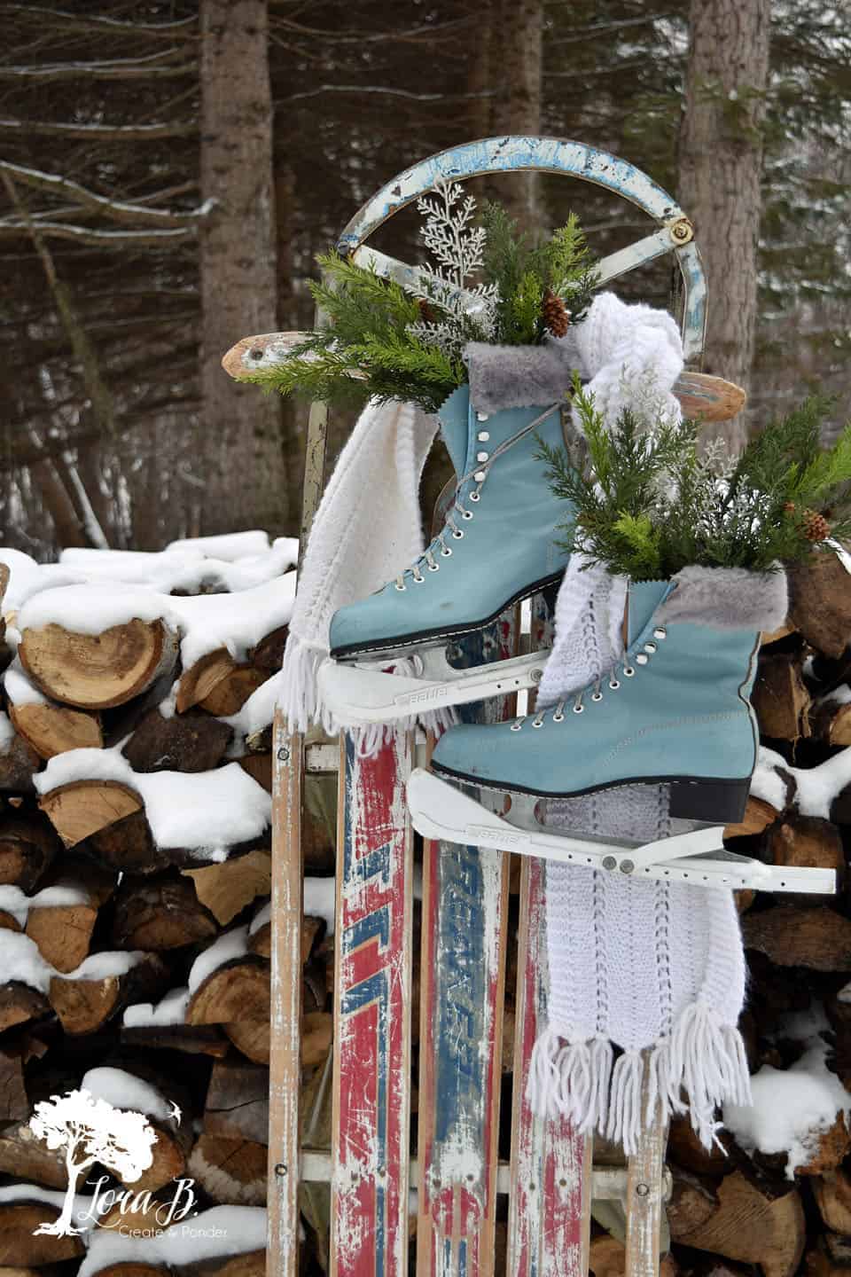 Hang a pair of vintage ice skates from a hook on the wall or place them artfully by the door with a sprig of holly or pinecones. This evokes a nostalgic winter charm and adds a unique, thematic touch to your porch. It’s an unexpected decorative element that can tell a story and create a delightful visual. Pair them with a Charming Farmhouse Holiday Porch Ideas for a complete look.