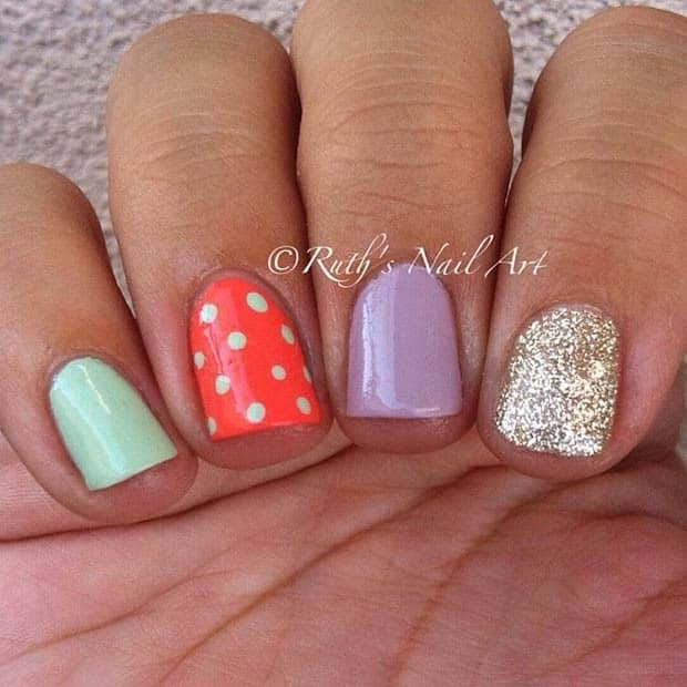 Soft pastel nails become instantly more elegant with the addition of delicate gold details. Whether it’s thin gold stripes, tiny studs, or metallic flakes, the combination of subdued hues and shimmering gold creates a sophisticated and artistic look.