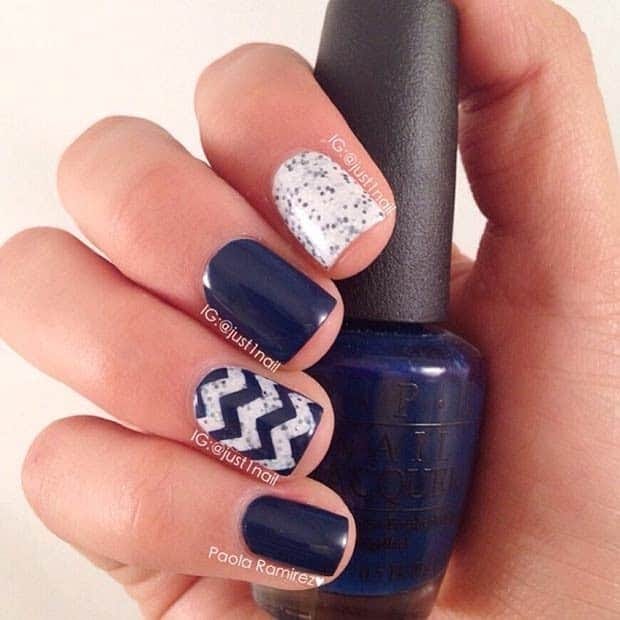 For a bold and modern geometric statement, a dark blue chevron design is striking. The crisp, V-shaped patterns in deep blue hues add an edgy yet sophisticated touch to your nails, perfect for those who love structured and contemporary styles.