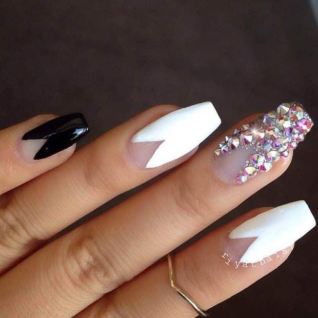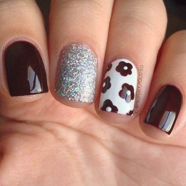 Crisp white combined with shimmering silver creates a dazzling and fresh nail design. This elegant pairing is fantastic for winter glamour, bridal looks, or anyone who loves a clean yet sparkling aesthetic. Think silver glitter on white, or delicate silver lines.