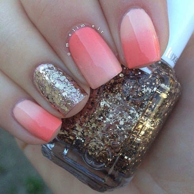 Brighten your day with ombre coral and gold nails. This vibrant and warm combination transitions beautifully, with coral fading into golden tips or accents. It’s a cheerful and luxurious design, perfect for summer vacations or adding a pop of color.