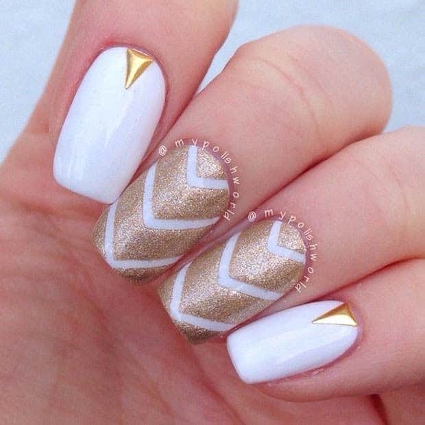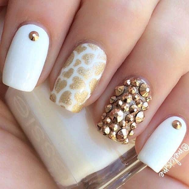For a clean, bright, and sparkling look, white nails with gold glitter are a brilliant choice. The crisp white provides a perfect canvas for the dazzling gold, creating a chic and festive manicure that’s ideal for celebrations or adding a touch of luxury.