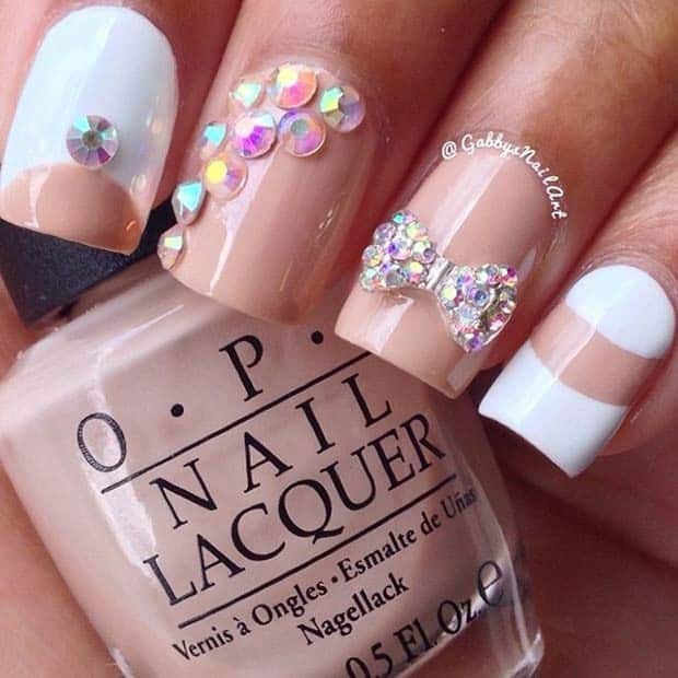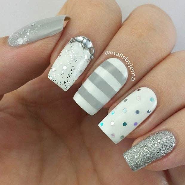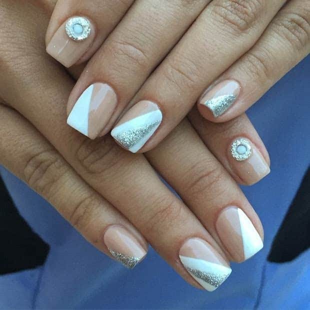For a clean, crisp, and effortlessly elegant manicure, a simple nude, white, and silver design is perfect. This palette creates a harmonious and polished look, ideal for everyday wear or occasions where you want subtle sophistication.