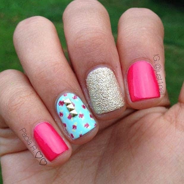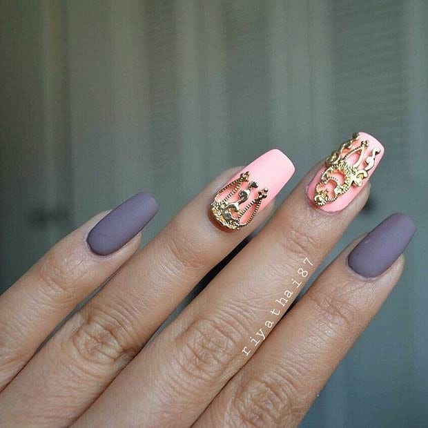 Combine the sweetness of pink and gold with the delicate beauty of a flower accent nail for a truly enchanting look. This design is perfect for spring, summer, or any occasion where you want to add a touch of feminine charm and elegance.