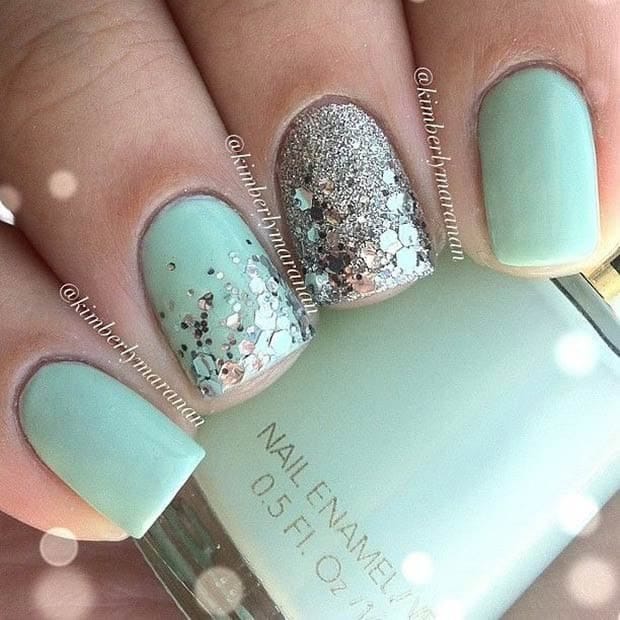 Fresh and enchanting, mint and silver glitter nails evoke a sense of whimsical charm. The cool tones of mint green pair beautifully with the sparkle of silver, creating a refreshing design perfect for spring, summer, or anyone who loves a touch of ethereal beauty.