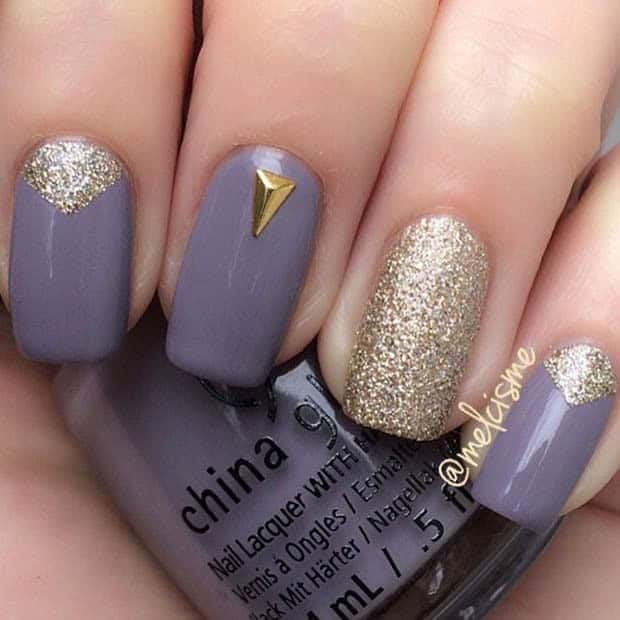 For a dose of understated glam, dark grey nails get a major upgrade with gold glitter. The sophisticated charcoal or slate grey provides a perfect moody backdrop for dazzling gold sparkle, creating a luxurious and modern look, especially for cooler seasons.